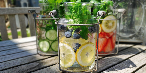 Infused Water: Zitrone, Heidelbeeren & Minze